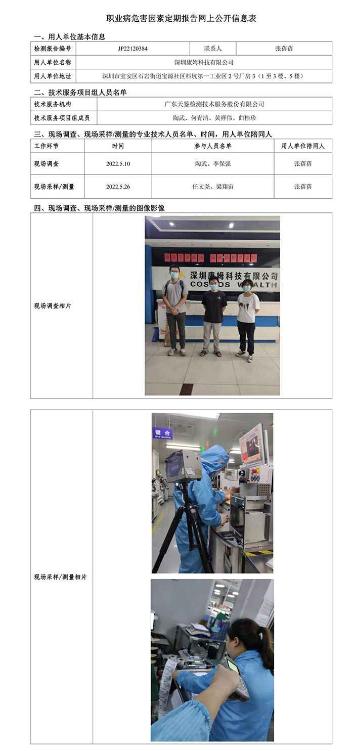 JP22120384 深圳康姆科技有限公司职业病危害因素定期报告网上公开信息表