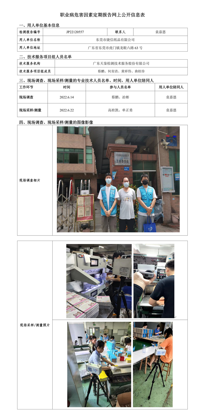 JP22120557东莞市捷信纸品有限公司职业病危害因素定期报告网上公开信息表