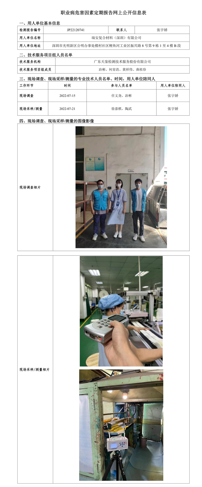 JP22120741瑞安复合材料圳限公司职业病危害因素定期报告网上公开信息表