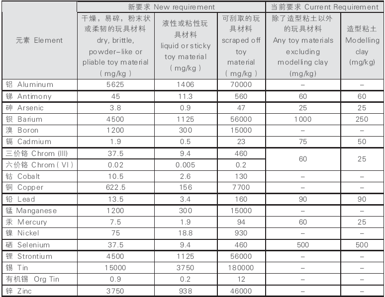 新的19项受限制元素迁移限值(详见下文)