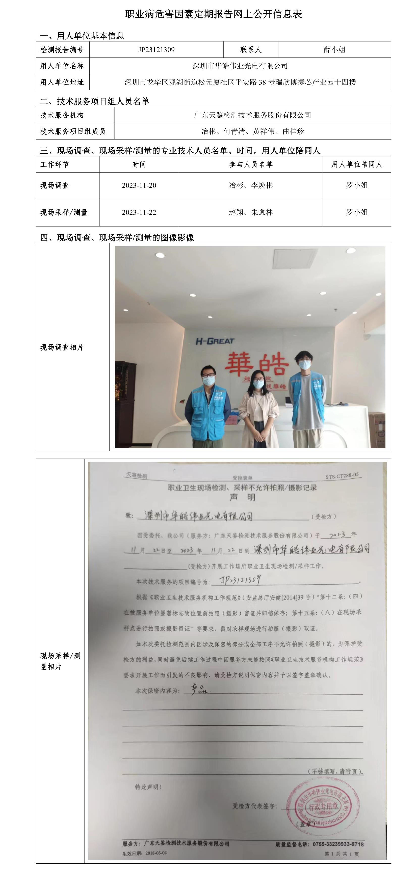 JP23121309 深圳市华皓伟业光电有限公司 职业病危害因素定期报告网上公开信息表
